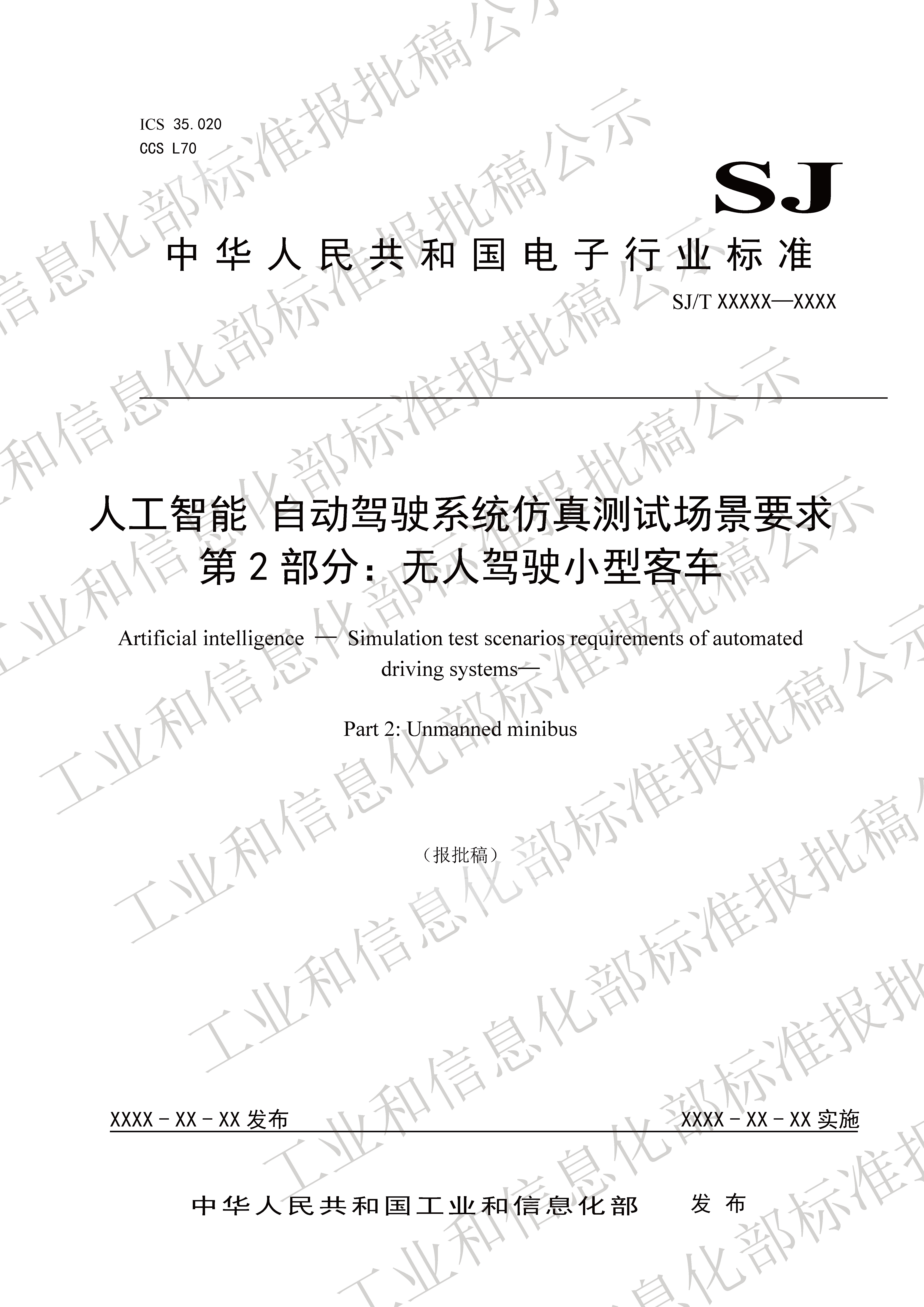 标准名称:人工智能 自动驾驶系统仿真测试场景要求 第2部分:无人驾驶小型客车