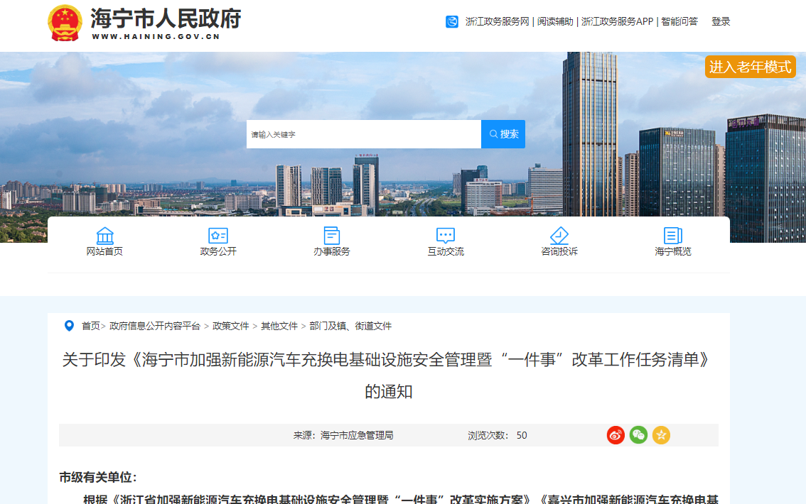 关于印发《海宁市加强新能源汽车充换电基础设施安全管理暨“一件事”改革工作任务清单》的通知