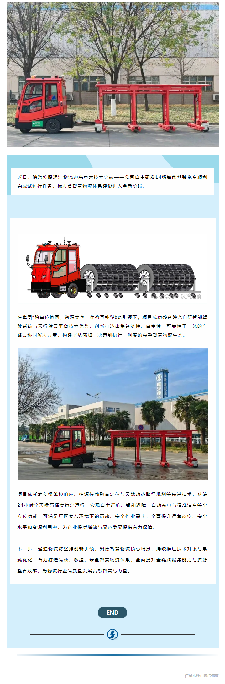 陕汽控股通汇物流智能驾驶拖车项目完成试运行