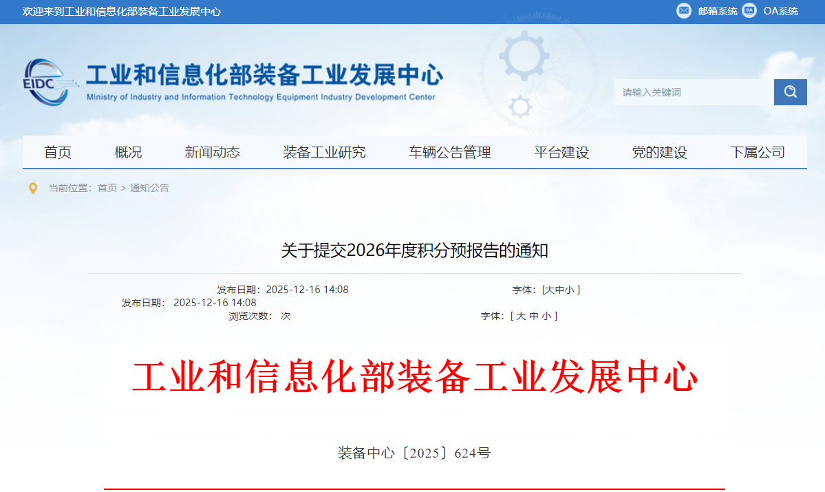 工信部装备中心:关于提交2026年度积分预报告的通知