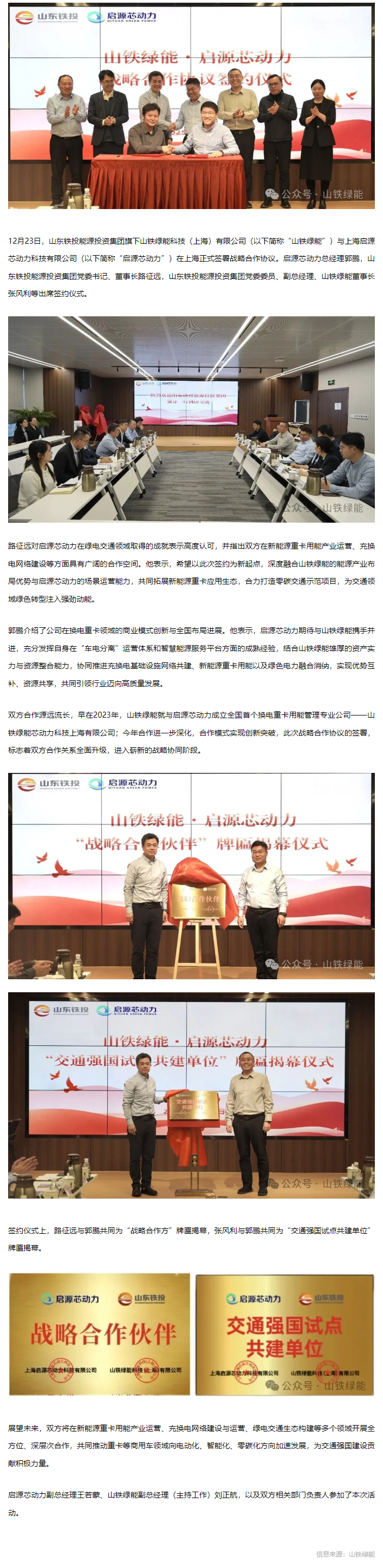 山铁绿能与启源芯动力签署战略合作协议